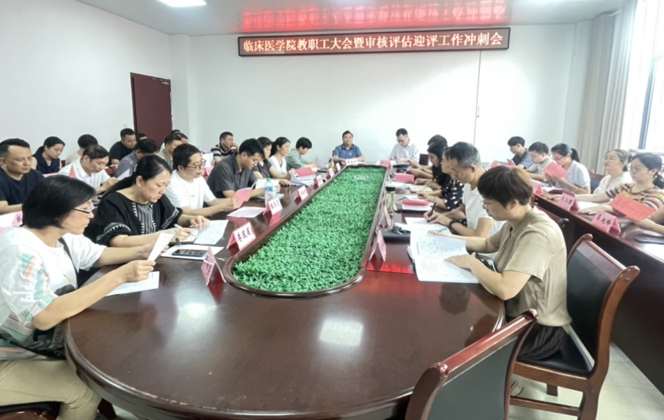(本站讯)9月30日下午,临床医学院于厚德校区至善楼东一411会议室召开本科教育教学审核评估迎评冲刺工作会,围绕迎评冲刺阶段、评估期间各项工作及学院近期各项重点工作进行部署和强化。院领导班子成员及全体教职工参加会议,会议由院党委书记吴永顺主持。