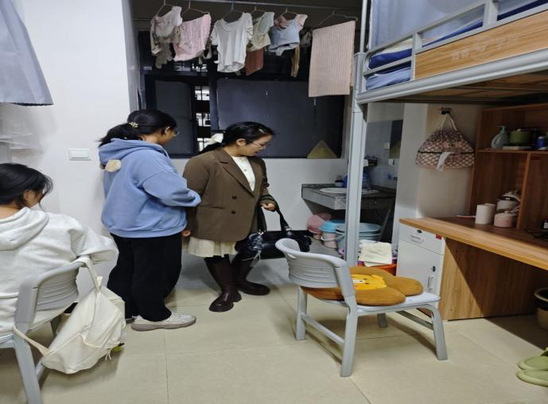我院检查人员细致走访了在校各年级学生宿舍,重点对用电安全、消防设施、是否使用无3C认证的充电宝、物品堆放、是否存在违规电器等方面进行了逐一排查。针对发现的部分安全隐患问题,检查组现场提出了明确的整改意见,并要求相关寝室立即落实,确保消除潜在风险。丁纬在检查中强调,安全无小事,必须时刻绷紧安全弦,要求学生自觉遵守宿舍管理规定,共同营造安全、文明、和谐的居住环境。