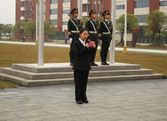 晨光初启,仪式在庄重肃穆的氛围中正式开始。国旗护卫队精神抖擞、步伐铿锵,护送五星红旗整齐入场。伴随着雄壮激昂的国歌,五星红旗冉冉升起,全体师生肃立注目。
