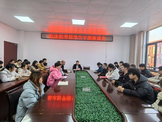 为做好2023级学生见习工作,1 月 8 日下午,临床医学院在第二会议室召开 2023 级学生干部座谈会,为即将开启的基地见习工作做动员部署。临床医学院党委书记吴永顺、党委副书记丁纬,全体辅导员及2023级各班班委参加会议。