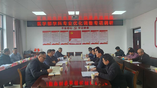 (本站讯)3月27日上午,校党委副书记、校长蔡海生,校党委委员、副校长李建军,副校长黄伟,校党委委员、副校长黄诚带领党委(校长)办公室、教务处、发规处、学科建设处、招生就业处负责同志一行,深入医学部就学科专业优化调整工作开展专题调研。临床医学院、基础医学院、公共卫生与健康学院、药学院院领导及各学院相关科室负责人、专业负责人参加调研会。
